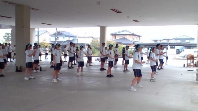 暑さのぶり返す中、団演技の練習に熱が入っています。