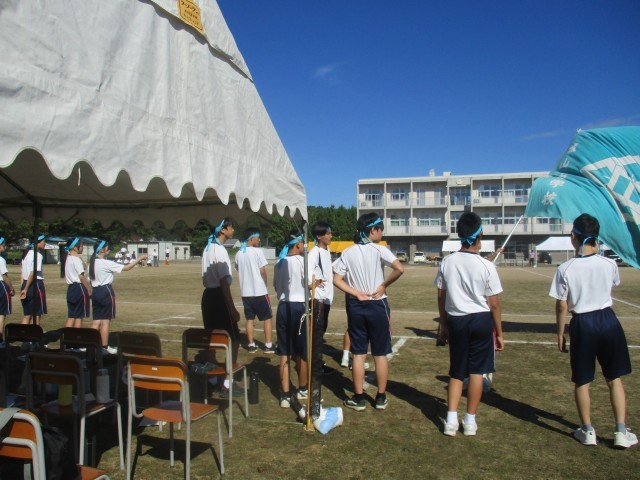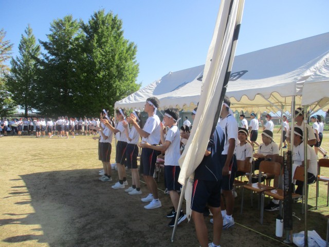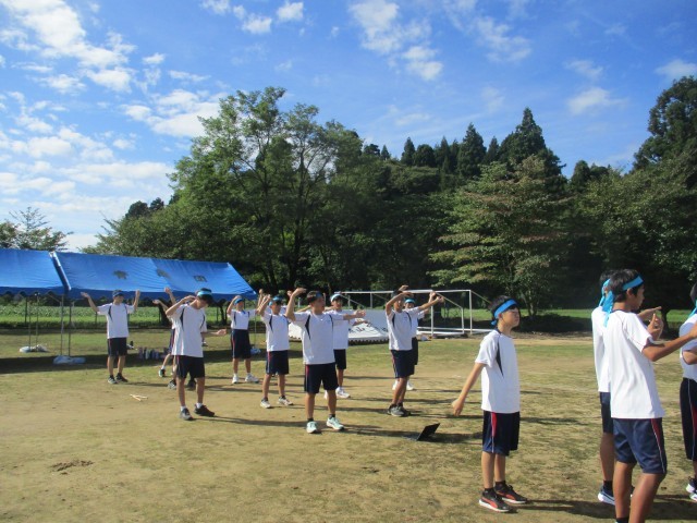 明け方の雨が止んだ後は、急に気温が上がってきました。そのような中、テント設営に協力してくれた3年生の皆さん、ありがとうございました。汗の処理等、しっかりと行いましょう。