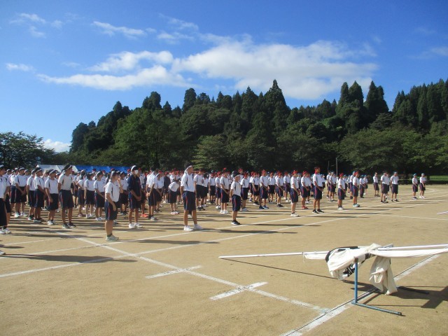 tetoruでも配信しました通り、明日実施予定の体育大会につきまして、明後日10月2日(木)に順延といたしました。複数の天気予報等を参考に、また少しでも整った気候条件(グラウンド条件も含む)の下で大会が実施できれば、という検討、判断に基づくものです。保護者や地域の皆さまには、どうぞご理解とご協力をよろしくお願いいたします。