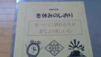 「冬休みのしおり」を配付しました。課題には、各教科のテキスト学習があります。 規則正しい生活を送り、毎日コツコツと学力をつけていきましょう。