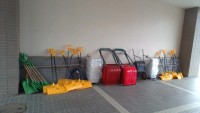 除雪のための用具、この後は必要がなくなることを願いたいです。 本日は学年末考査2日目(1、2年生)、3年生も実力確認テストを行います。1、2年生の下校は13:00頃、3年生は14:00頃の予定です。