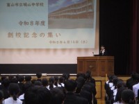 昨日、創校記念の集いを行いました。校長から、創立当時の校舎や生徒の様子、伝統を受け継ぐ今の生徒の「話の聞き方のすばらしさや美しい心」について話がありました。また、2年生、3年生の代表生徒から、昨年度の...