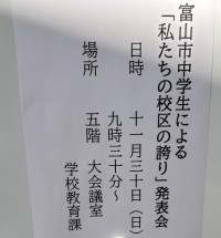【11月30日(日)】富山市中学生による「私たちの校区の誇り」発表会