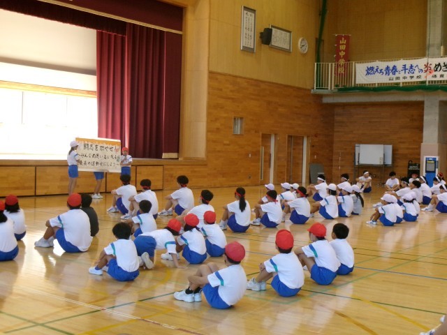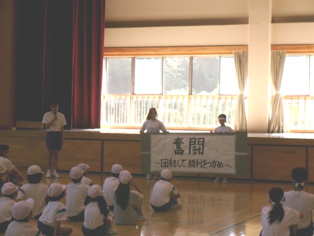 [8月28日(木)1限 小中合同運動会 結団式]