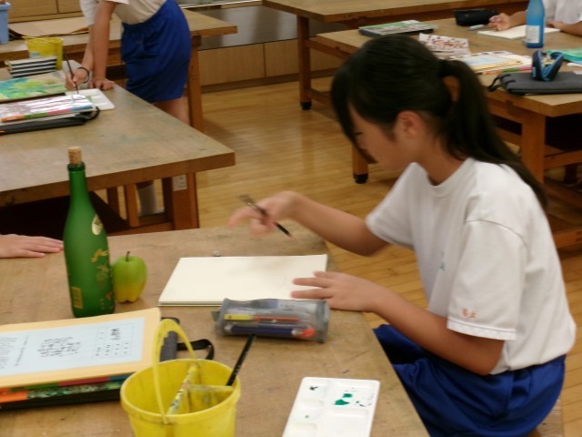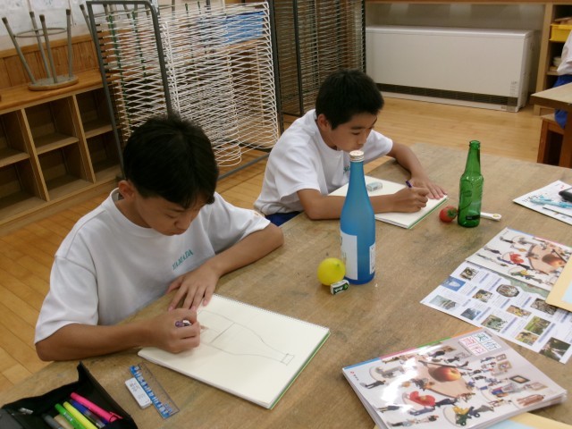 「私の大切なもの」の課題に取り組むため、構図の表現方法について、考えました。見る角度や配置、「描きたいもの」の特徴等、画面へのとり入れ方を身の回りにあるものを使って、デッサンしました。