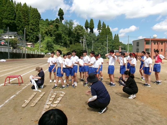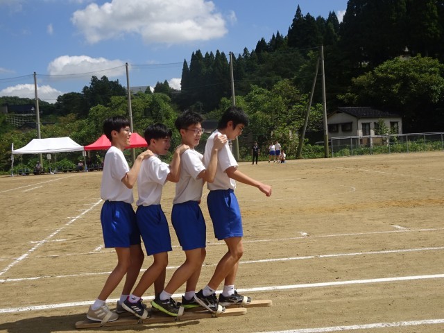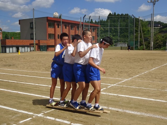 この種目は6年ぶりに復活したものです。生徒にとって初めての競技でしたが、自分たちの一生懸命を力いっぱい見せてくれました。上手く息が合わく。前に進めない時に、仲間に声をかけながら合わせようとする姿が印象的でした。