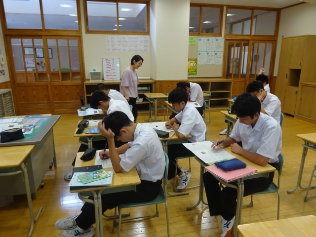 プリントを解いて、教科書の学習内容を確認しました。静かに文章を読み進め、粘り強く問題に取り組んでいました。