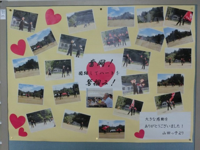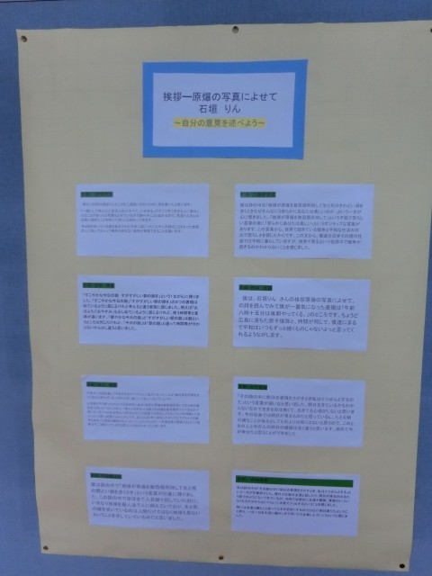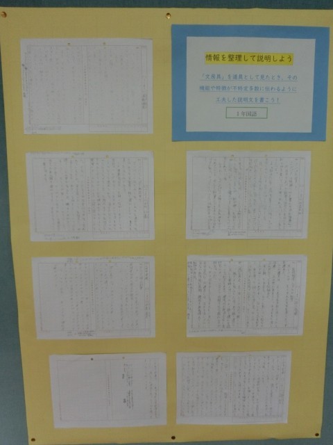 本日は統一公開日です。学年棟には先日の運動会の写真や、生徒たちが授業で取り組んだ作文等が掲示してあります。