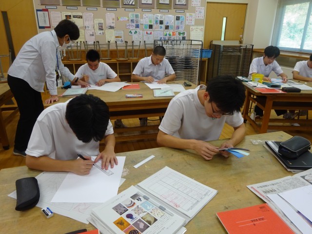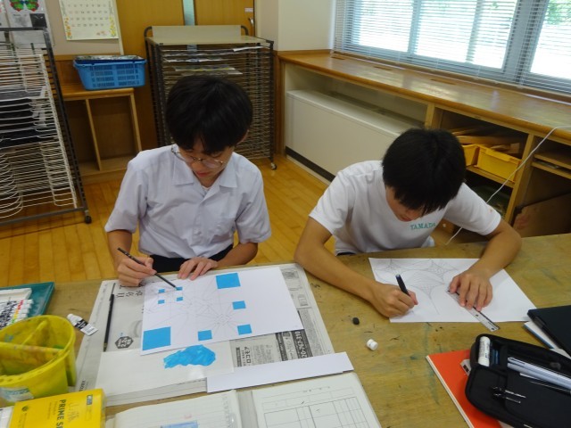 等角投影図法や二点透視図法等の技法を使い、立体感のあるパターンデザインに取り組んでいます。
