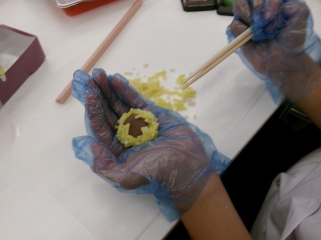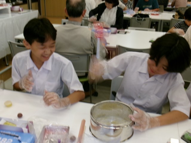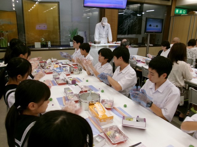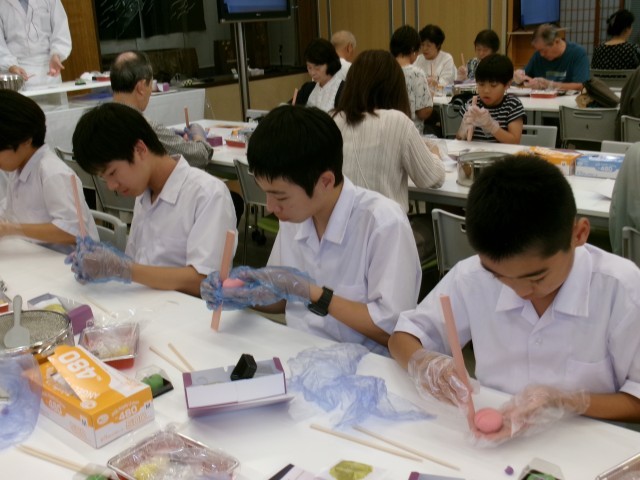 午後からは石川県観光物産館で和菓子作り体験活動を行いました。和菓子作り職人の方のお話を聞きながら楽しそうに作っていました。