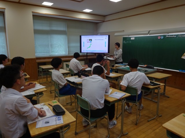 週末に見た映画を紹介する場面について書かれた文章を読み、内容を確認しました。書かれている内容を理解しようと、積極的に発表していました。