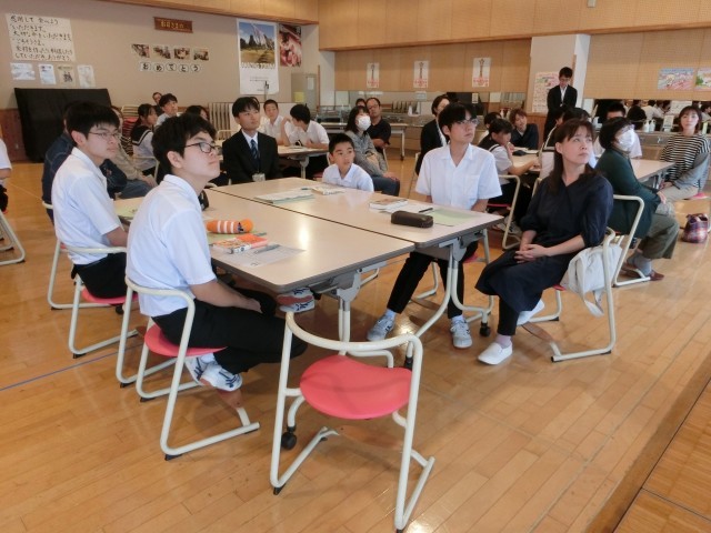 保護者のみなさまも一緒に参加して、全校生徒による国語の授業を実施しました。