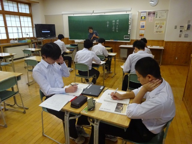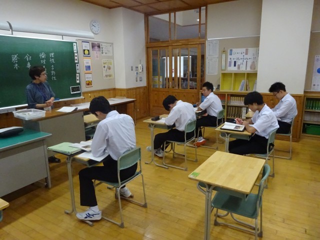漢字の学習を行いました。対義語や類義語、四字熟語等の学習を通して、様々な語句の意味を理解しました。「和洋折衷」、「戸籍謄本」、「綱紀粛正」等難しい言葉がたくさんありましたが、意味を理解しようと粘り強く取り組んでいました。