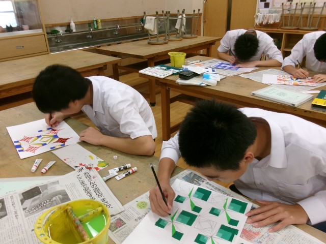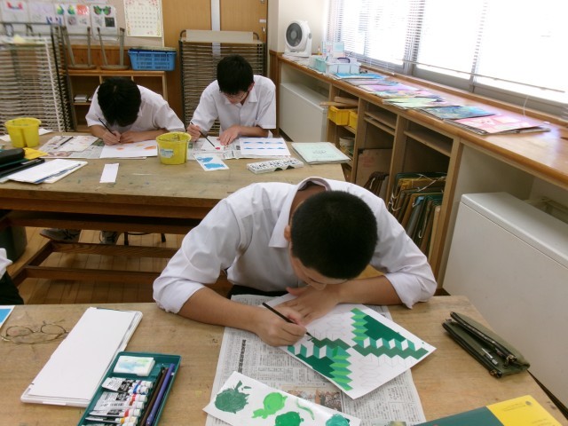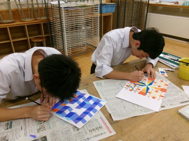むらなく、はみ出さず、美しい仕上がりにするにはどうすればよいか、考えながら色を塗っています。