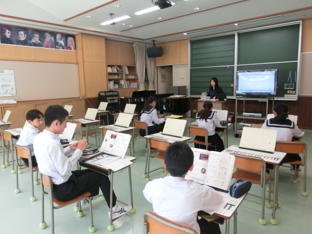2限の授業の様子です。1年生は音楽、2年生は理科、3年生は数学の授業に真剣に取り組んでいました。