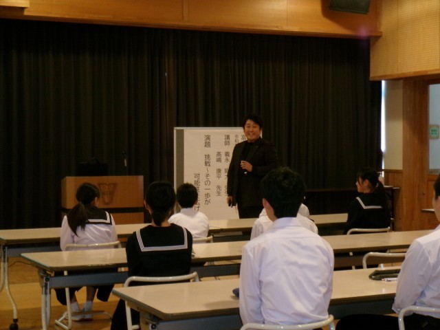 富山青年会議所から講師2名が来校され、「挑戦~その一歩が可能性を広げる~」と題して講演していただきました。