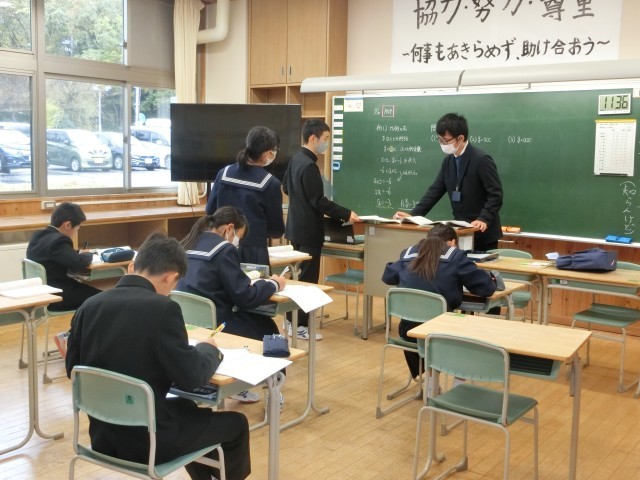 4限の授業の様子です。1年生は数学を、2年生は保健を、3年生は学活でテストの計画表づくりを頑張っていました。