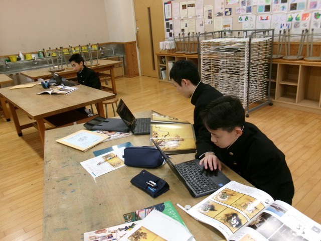 「風神雷神」について学習しました。「風神雷神図屏風」から屏風や風神雷神の特徴等、写真や動画を見ながら学びました。