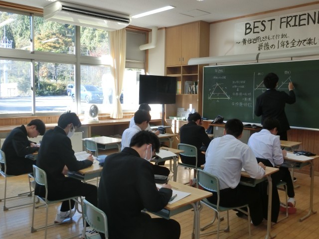 2限の授業の様子です。1年生は音楽、2年生は理科、3年生は数学の授業に真剣に取り組んでいました。来週には2学期末評価も控えています。いつも以上に学習に力を入れていきましょう!