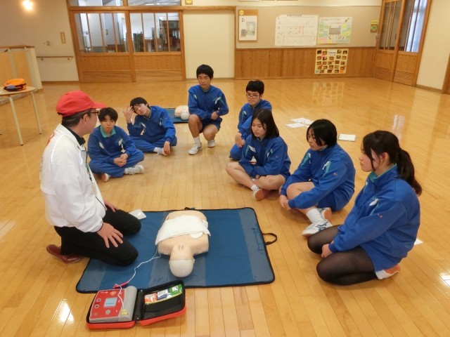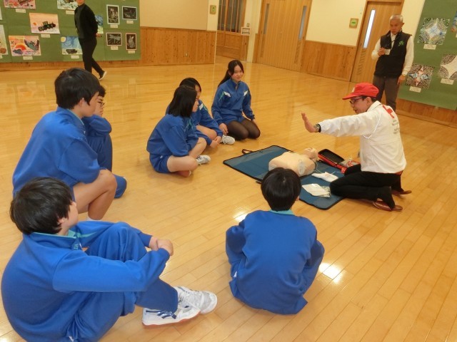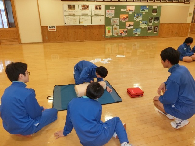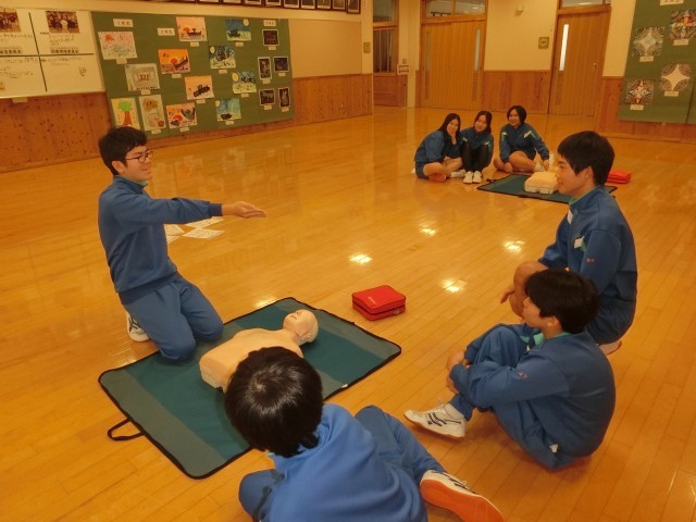 5限は2年生の保健体育の授業の一環として救急救命講習会を行いました。講師の先生のお話を聞き、いざというときのため真剣に活動に取り組んでいます。