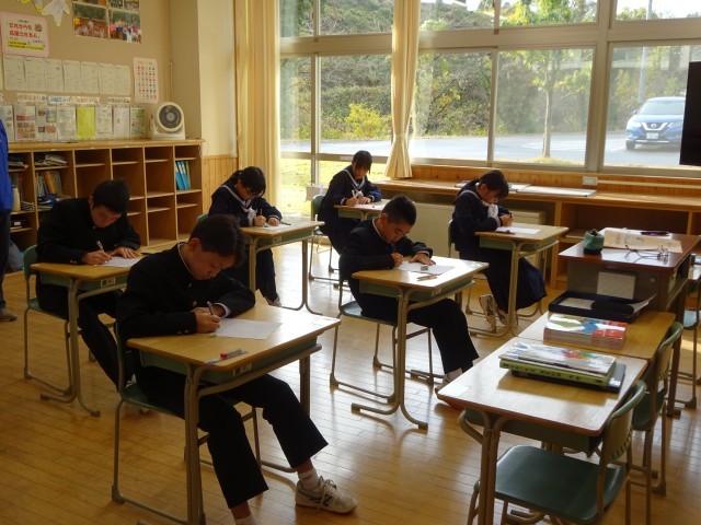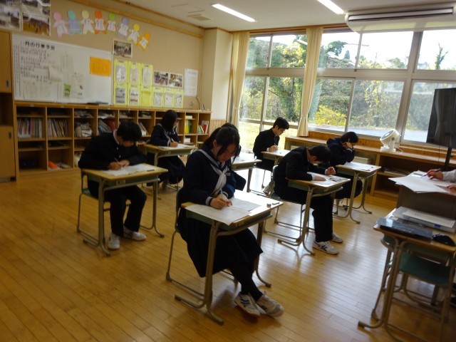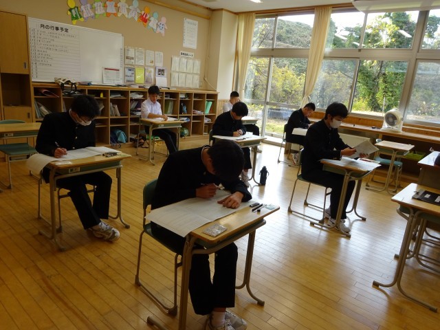 2学期期末評価の様子です。試験を通してこれまで学習した内容を確認します。日々の授業やワークで解いた問題を思い出しながら、粘り強くテストに取り組んでいます。