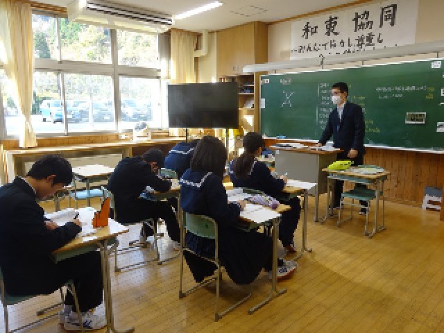 1限の各学年の様子です。1年生は書写「日光」を丁寧に一生懸命書きました。2年生は数学「図形の証明」を学び、証明するまでの理論を理解し、与えられた課題をまずは自分の力で取り組みました。3年生は高校受験に向けた外国語の確認テストを行いました。志望校の合格に向けて自分の力を確認することができました。