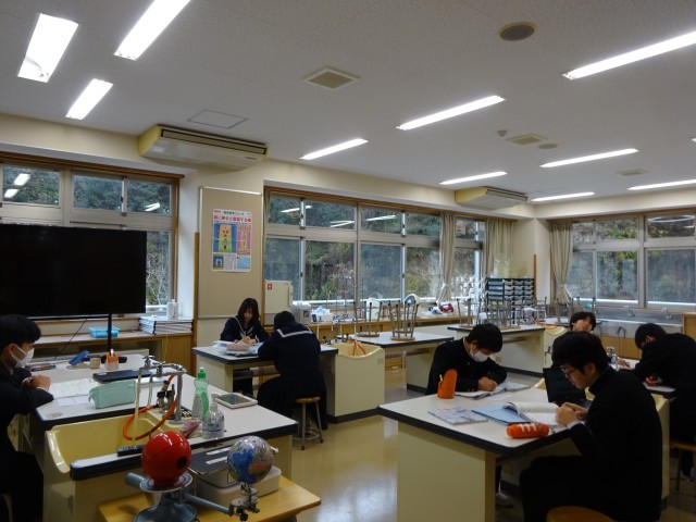 3限の授業の様子です。1年生は数学、2年生は理科、3年生は国語の授業に真剣に取り組んでいました。