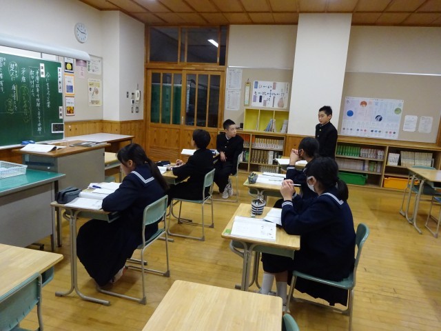 故事成語「矛盾」のもとになった話を読み、内容を確認しました。それぞれがこれまで経験した矛盾を発表し、体験談と結び付けて理解を深めました。