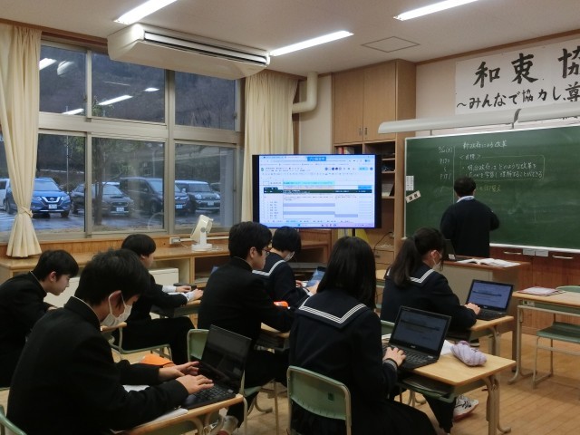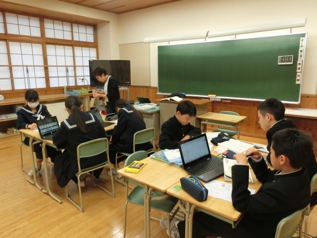 1限の授業の様子です。1年生は国語、2年生は社会、3年生は英語の授業に真剣に取り組んでいました。