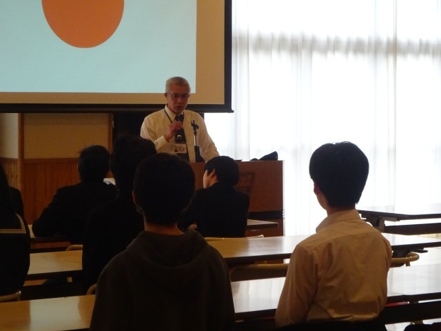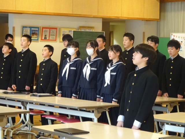 校歌を合唱した後、生徒指導の先生から情報についての話がありました。端末は学習のために使うこと、自由な時間が増える冬休み中はSNSの使い方や使用時間について自己管理をすることの大切さを再確認しました。