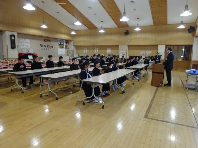 校長先生の式辞では、1・2年生は学年の総まとめ、3年生は義務教育の総まとめの3学期です。