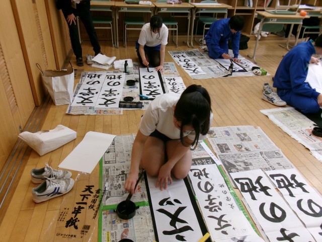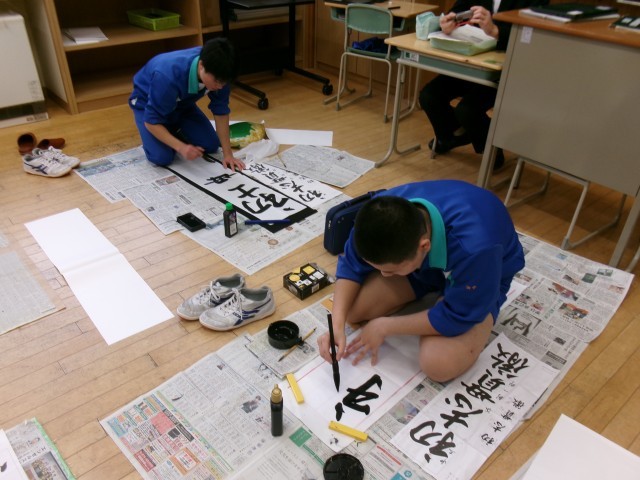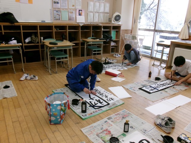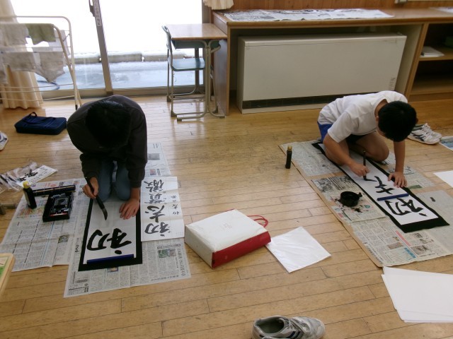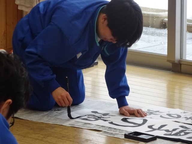冬休みに練習した成果を発揮しようと、気持ちを込めて丁寧に筆を運んでいました。