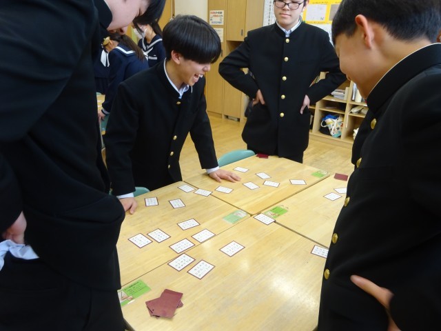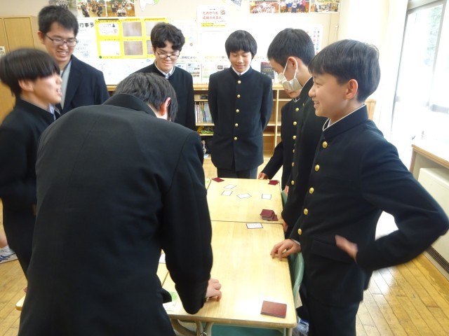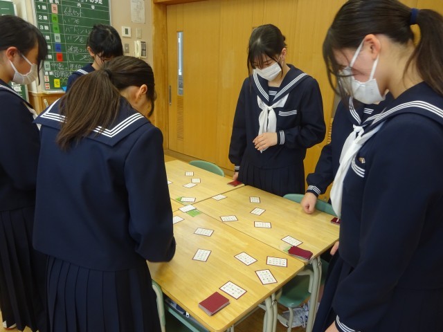 5限目は1年生と2年生合同で来週の百人一首大会に向けて練習をしました。自分の推し札を中心に詠まれた句を集中して聞きながら札をとりました。白熱した練習となり、当日の大会が盛り上がること間違いなしです!