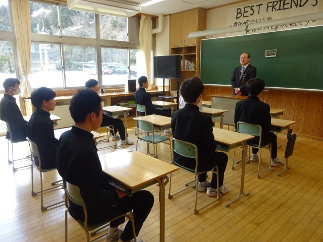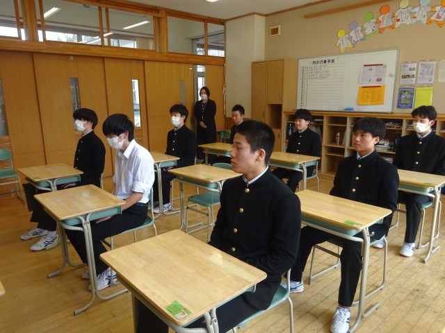 4限目に明日から始まる県立一般入試に向けて校長先生から激励の言葉を頂きました。校長先生のお話を生徒一人ひとり真剣に聞き、志望校合格するという気持ちを高めていました。頑張れ!3年生!