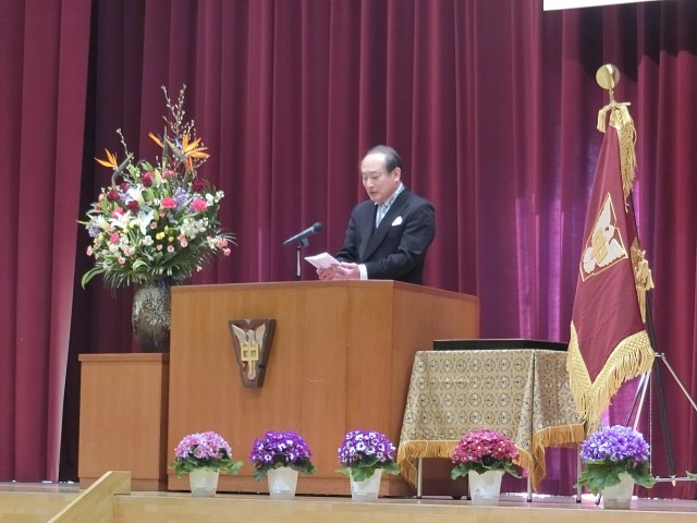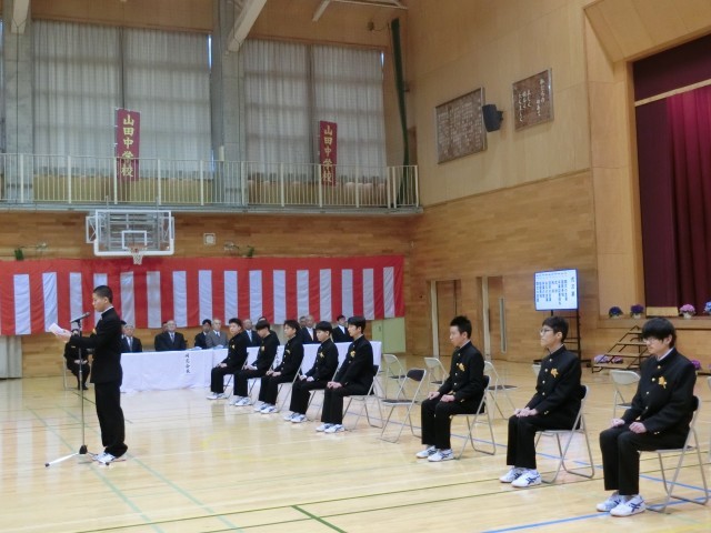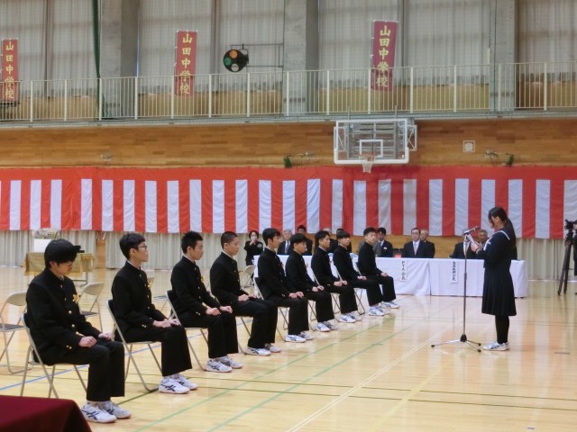 校長先生の式辞、在校生代表「送別の言葉」、卒業生代表「お礼の言葉」の様子です。
