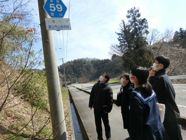 本日、1年生は3、4限の授業で野外調査を行いました。山田地域を歩いて旧道と新道の違いや特徴を確認したり、小島地区や中村地区で地元住民の皆さんに聞き取り調査を行ったりしました。山田地域の歴史や現在の山田地域が抱える課題にも触れることができ、実りある地域調査となりました。
