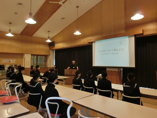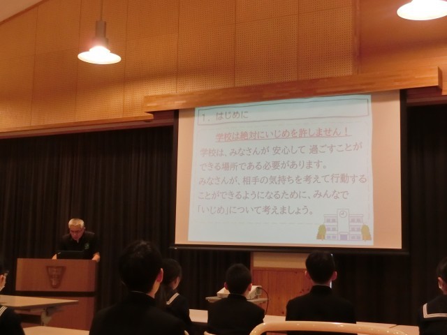 本日5限目は個人写真撮影の後、「いじめ」について考える集会を行いました。どのような言動が「いじめ」に該当するのかなどを改めて確認しました。みんながお互いによい気持ちで過ごせるように、相手の気持ちを考えて行動しましょう!