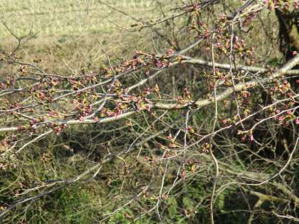 明日始業式を前にして、駐車場にある桜の木のつぼみも膨らみ始めています。つくしも大きく伸びています。