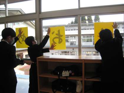 3年生は、清掃活動の前に入学式の準備に取り組みました。