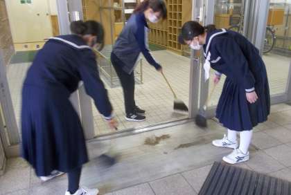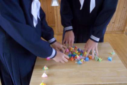明日の入学式に向けて、2、3年生が心を込めて準備しました。