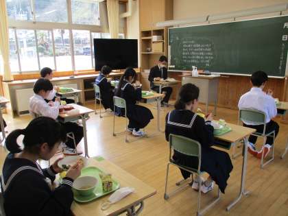 1年生にとって、中学校の給食も今日が初めてでした。小学校のときよりも少し量が増えましたが、おいしくいただきました。