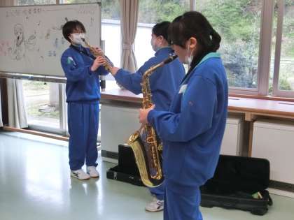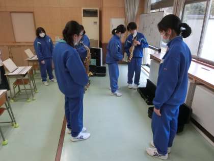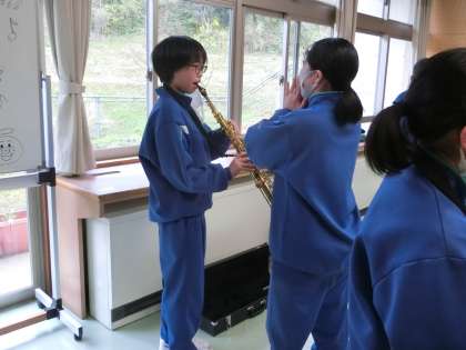 1年生入部体験です。今日から1年生は思い思いの部活動を体験します。慣れない楽器ですが良い音が出ています。20日には入部届を血出します。