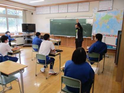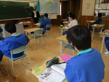 3学年の社会では、20世紀前半の世界の歴史について、先生と確認しながら学びを深めていました。