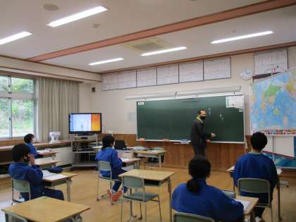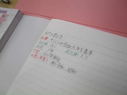 1年生は、社会で歴史について学んでいました。先生の問いに、元気よく答えている姿が見られました。