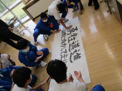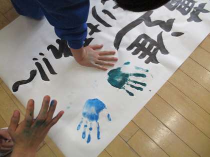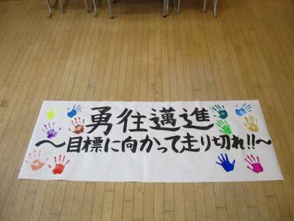 3年生は、先日決定した学級目標の掲示物を作成しました。目標の周りに、一人一人の手形を押してあります。全員で、自分の目標、クラスの目標に向かって走り切ろう!楽しみにしています!