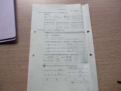 〜リズムと拍子について〜教科書を活用して、プリントに音符・休符・記号用語を記入しました。後半は、アルトリコーダーで「カノン」「きらきら星」「威風堂々」を演奏しました。