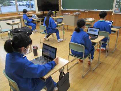 登校したら、提出物を教卓の上に置き、クロームブックで健康観察を行います。朝の習慣が身に付いてきました。