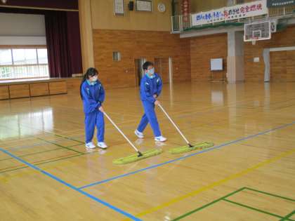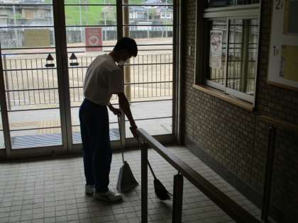 それぞれの担当場所を丁寧に掃除しています。