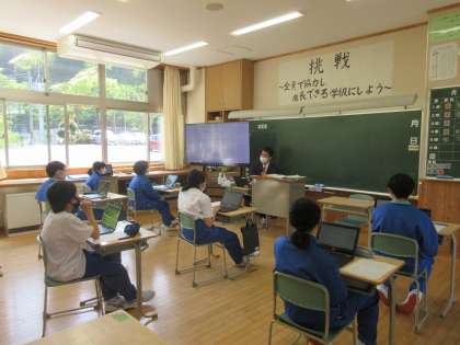 今日、各教室で、各教科の予習復習の仕方を確認しました。また、今年度の家庭学習目標時間を一人一人が決めました。これから毎日終学活の時間、その日の授業を振り返り、自分の家庭学習目標時間を確認します。翌日の朝、生徒たちは、実際に家庭学習に取り組んだ時間を一人一台端末に入力し、教員が確認し、適宜励ましや賞賛をします。