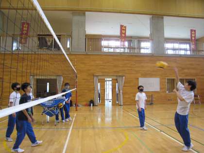 卓球部、バレーボール部は体育館で練習を行っていました。